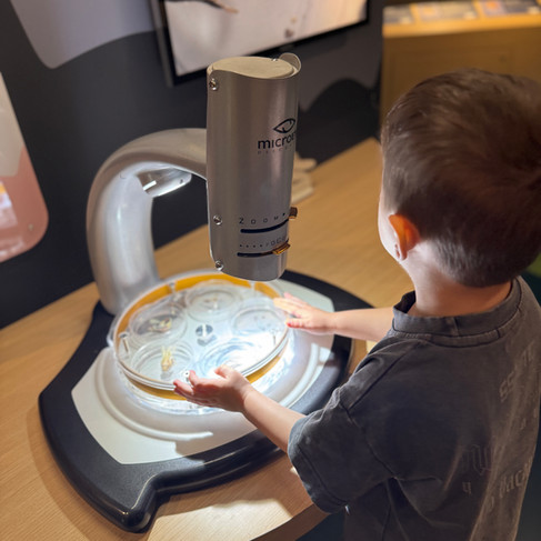 We started in the puzzle and play room, which instantly drew my little one in — lots of hands-on learning, sensory discovery, and curious minds at work. It was packed full of toys, teddies, puzzles and books. Then came the digital microscope (a huge hit), where we got to see some creepy crawlies really close up!